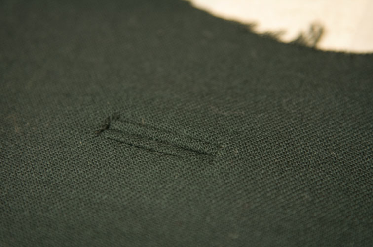This is because buttonholes require precision and a good quality machine to put them in. A good quality buttonhole is dense, the stitching is tight with no gaps, the edges are clean, and the ends are finished with a bar tack or a keyhole.